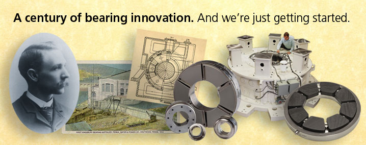 Throughout 2012, Kingsbury, Inc. is delighted to be celebrating a century of innovation that began in 1912 with the first successful installation of Dr. Albert Kingsbury's invention at a hydro generating station on the banks of the Susquehanna River in Central Pennsylvania. The utility, known then as Pennsylvania Power and Water, had been using rolling element bearings in the Holtwood Generating Station's ten hydro turbines in its early years, and they were wearing out within months due to the 220 ton loads. The utility was on the verge of bankruptcy when, in desperation, the owners gave the aspiring inventor a chance to test his fluid film bearing. For more on the history, see http://www.kingsbury.com/about-us.